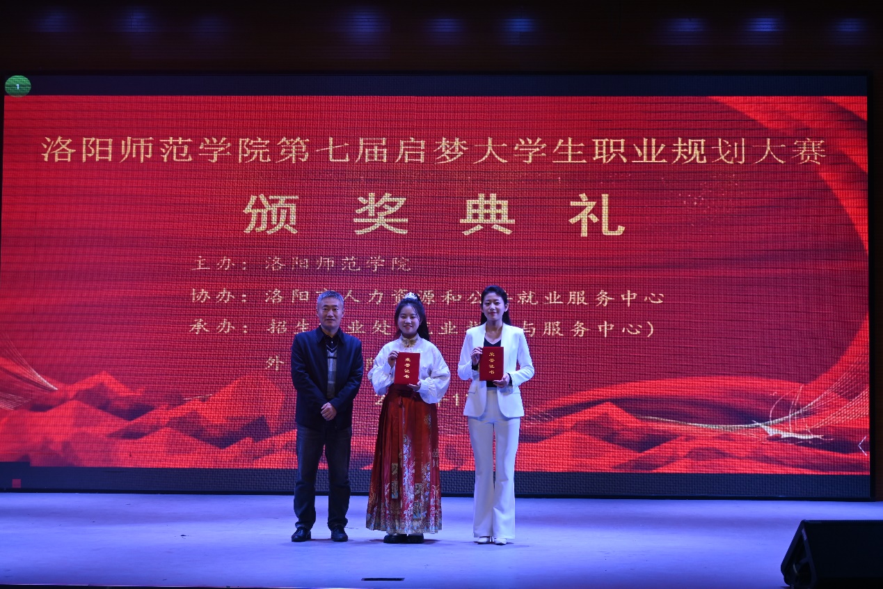 12月13日下午,由洛阳师范学院主办,洛阳市人力资源和公共就业服务中心协办,招生就业处(就业指导与服务中心)和外国语学院承办的第七届启梦大学生职业规划大赛决赛在我校蓓蕾剧场举行。副校长赵邦屯、洛阳市人力资源和公共就业服务中心党委书记、主任张超峰出席大赛。特邀河南科技大学招生就业办公室副主任朱林、洛阳市人力资源和公共就业服务中心副主任冯迅燕、洛阳环球雅思学校校长冯盼、郑州高途云集教育科技有限公司高途河南校招负责人赵菲担任本次大赛评委,各书院、二级学院党委副书记、就业创业工作办公室负责人和招生就业处全体人员观摩比赛。