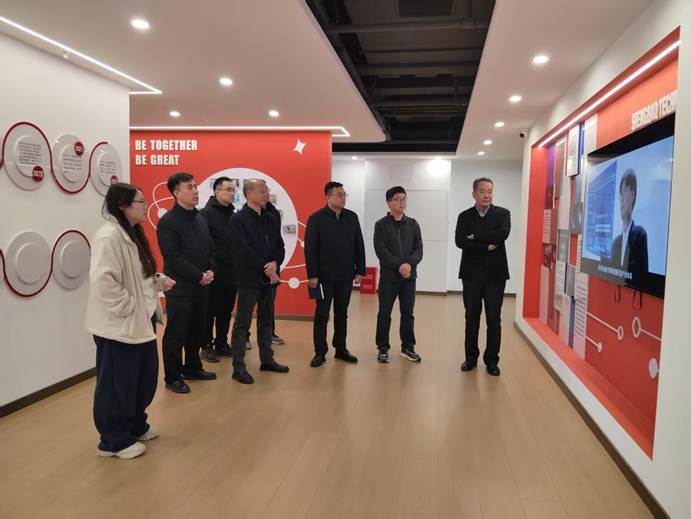 在伊滨智慧岛负责人陪同下,刁鸿安一行观看了洛阳伊滨智慧岛TOP企业港项目宣传片,详细听取了伊滨智慧岛项目建设情况及招商运营情况,并对近几年伊滨智慧岛在产业发展、项目引进等方面取得的显著成就给予了高度评价。随后,重点走访了飞度智能、玛达科技、圣宝科技等企业,深入了解企业的运营状况及人才需求情况。