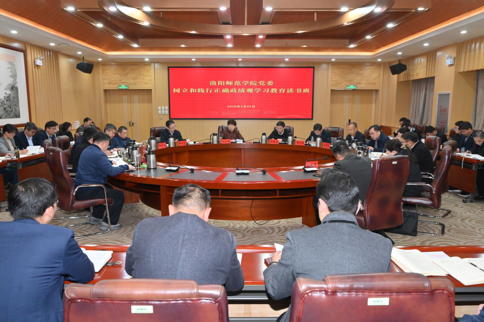 郭改英领学了《习近平关于树立和践行正确政绩观论述摘编》第一章等内容,校党委副书记张运礼,副校长马录芳、程金龙、赵冬生作交流发言。